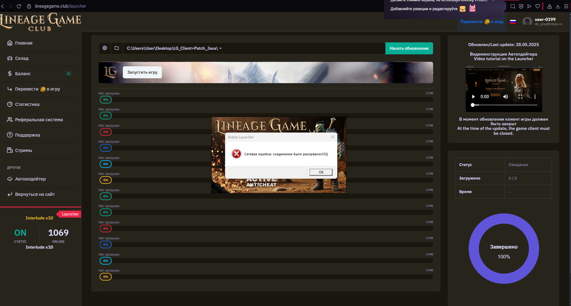 Ошибка соединения, обычно повторный запуск помогает и входит в игру.